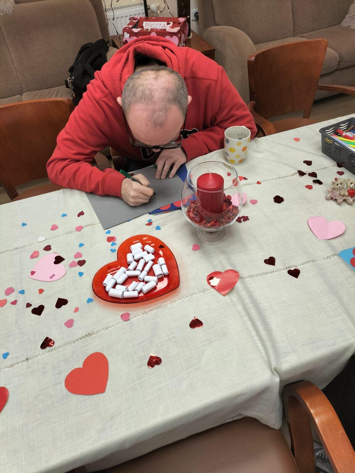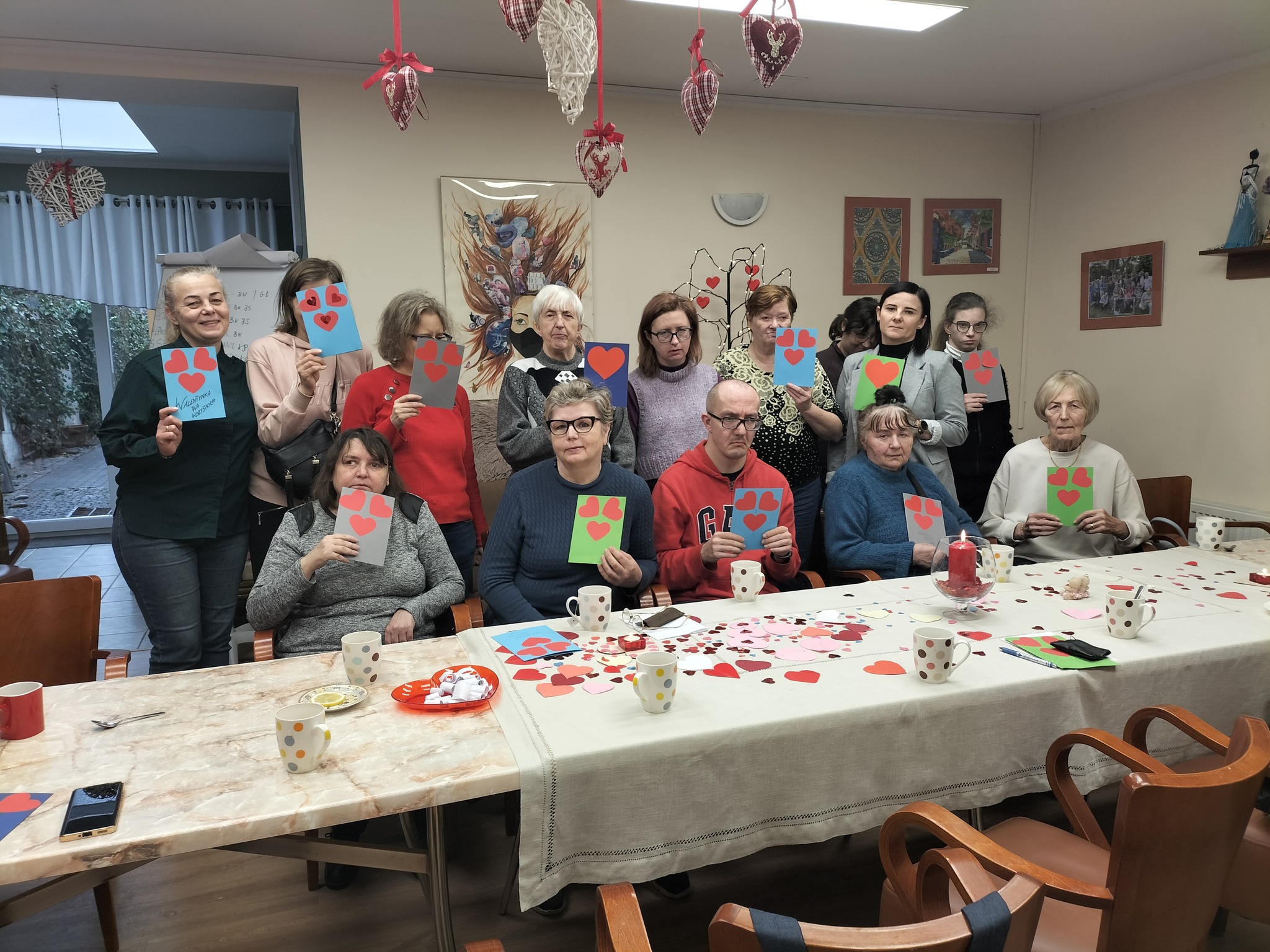 Przygotowania do tego święta trwały długi czas, gdzie w pracowniach powstały piękne ozdoby i smaczny poczęstunek. Uczestnicy wykonali także skrzynkę do poczty walentynkowej oraz laurki z miłym słowem. Po zaprezentowaniu myśli Walentynkowej otworzyliśmy naszą pocztę z kartkami, które były przepełnione ciepłym słowem dla każdego z naszych uczestników.