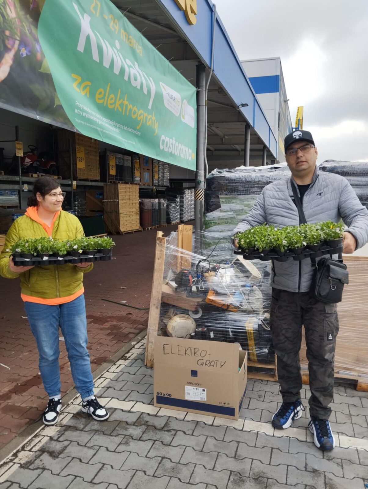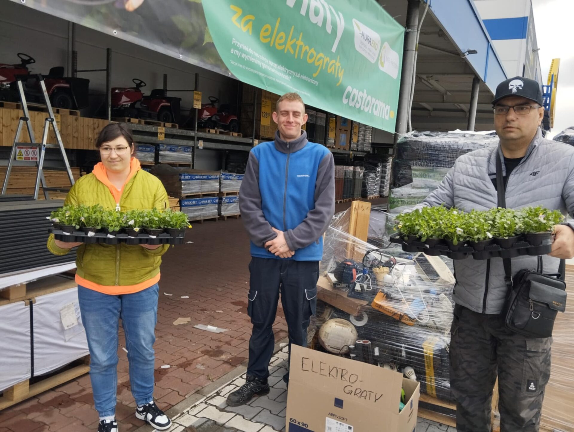 Po raz kolejny wspólnie zebrany przez uczestników oraz personel naszego Ośrodka niepotrzebny zalegający w domach sprzęt elektryczny oraz zużyte baterie wymieniliśmy dzisiaj na bratki. Które zostaną posadzone w donice naszego podwórka podczas zajęć z hortiterapii. Uczestnicy uczą się jak: – pomagać dbać o środowisko, oddając elektrośmieci do odpowiedniego recyklingu, dając przy tym, przykład odpowiedzialnej postawy ekologicznej! Na czym polega akcja ,,KWIATY ZA ELEKTROGRATY”. Wystarczy przynieść do wybranego sklepu Castorama zużyty sprzęt elektryczny lub elektroniczny (np. stare telefony, żelazka, suszarki, baterie czy inne drobne urządzenia RT Vi AGD). W zamian za każdy oddany elektrośmieć otrzymacie sadzonki bratków.